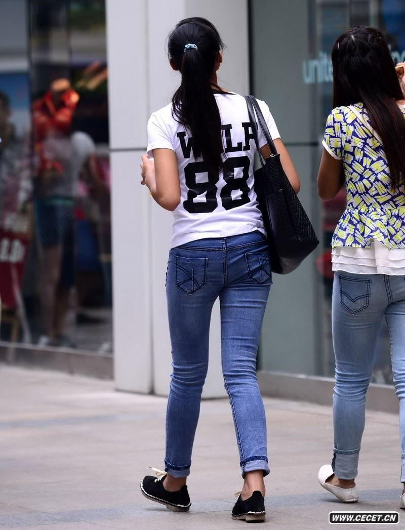 上海市街頭抓拍的緊身牛仔褲