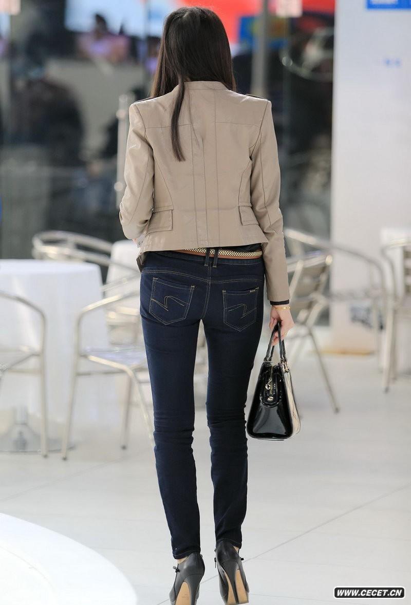 公司樓下大廳抓拍的牛仔褲美女