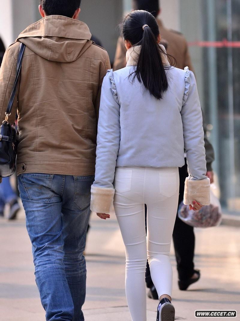 百貨商城街拍白色緊身褲美眉
