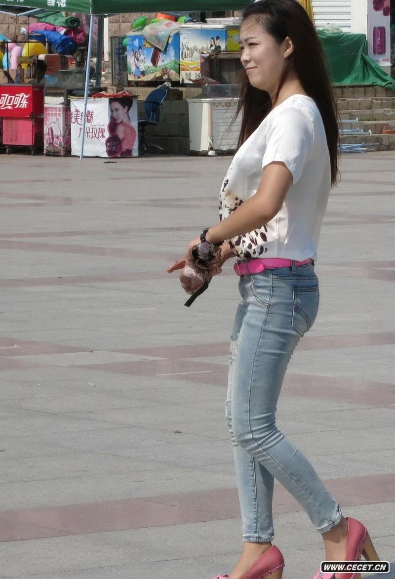 文化廣場(chǎng)街拍緊身牛仔褲美女