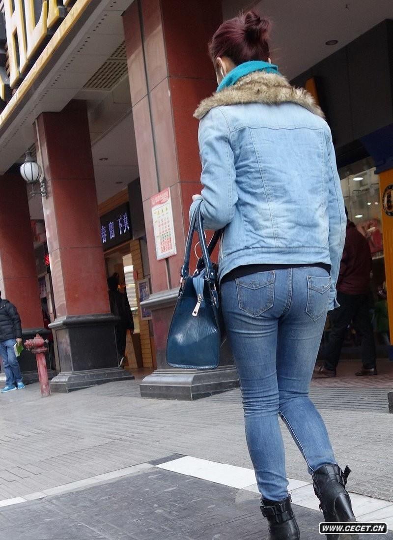 石家莊新萬(wàn)達街拍牛仔褲美女