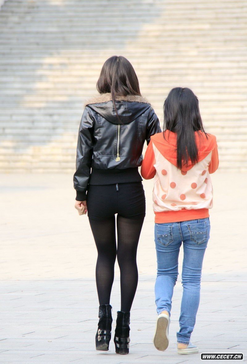 街拍牛仔褲妹妹和黑絲襪姐姐