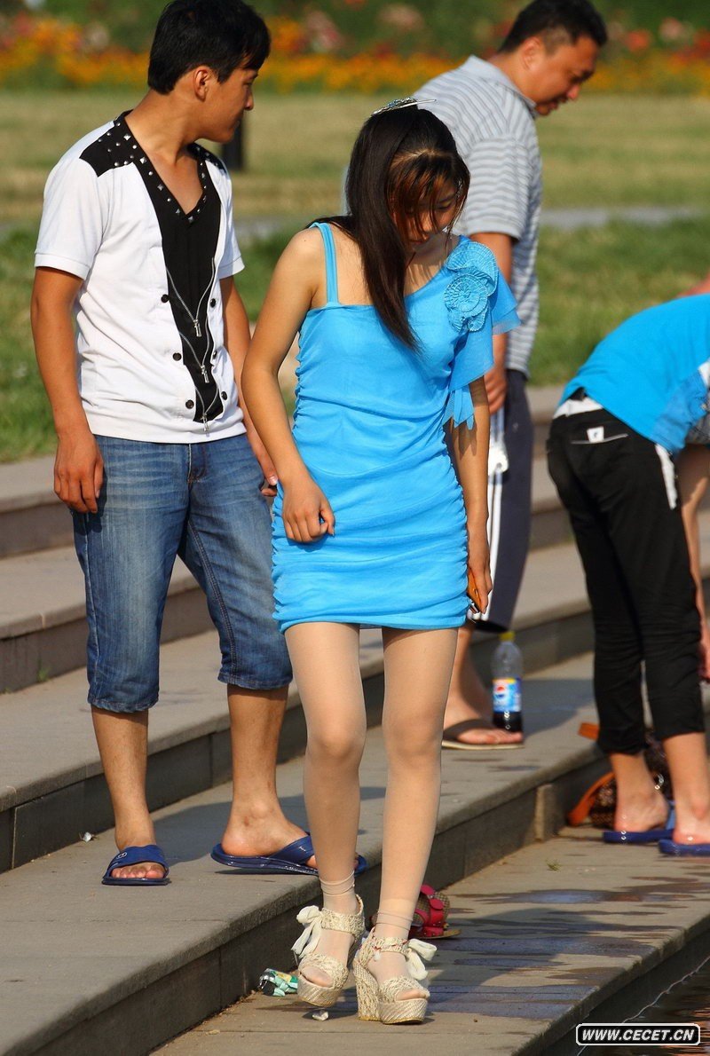 噴泉廣場(chǎng)街拍的泰國裙妹妹