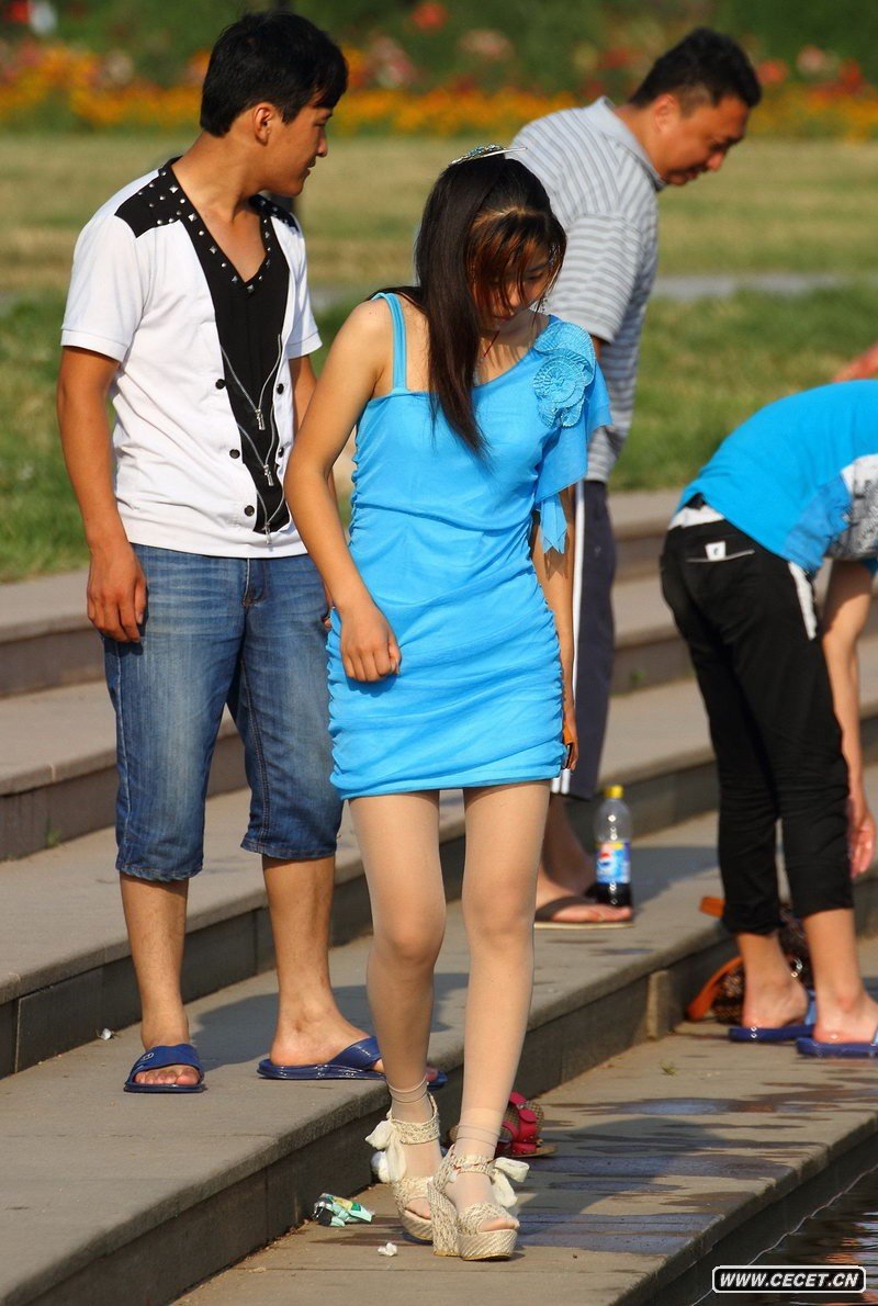 噴泉廣場(chǎng)街拍的泰國裙妹妹