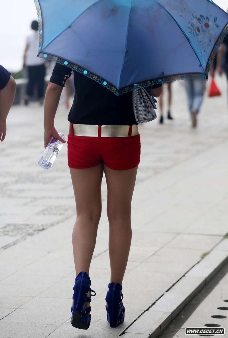 街拍遮陽(yáng)傘下的熱褲美腿美眉