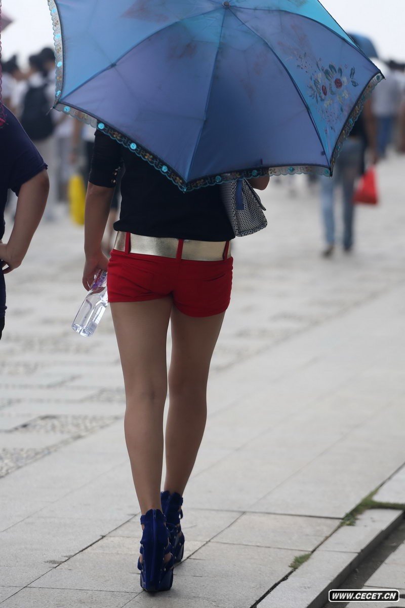街拍遮陽(yáng)傘下的熱褲美腿美眉