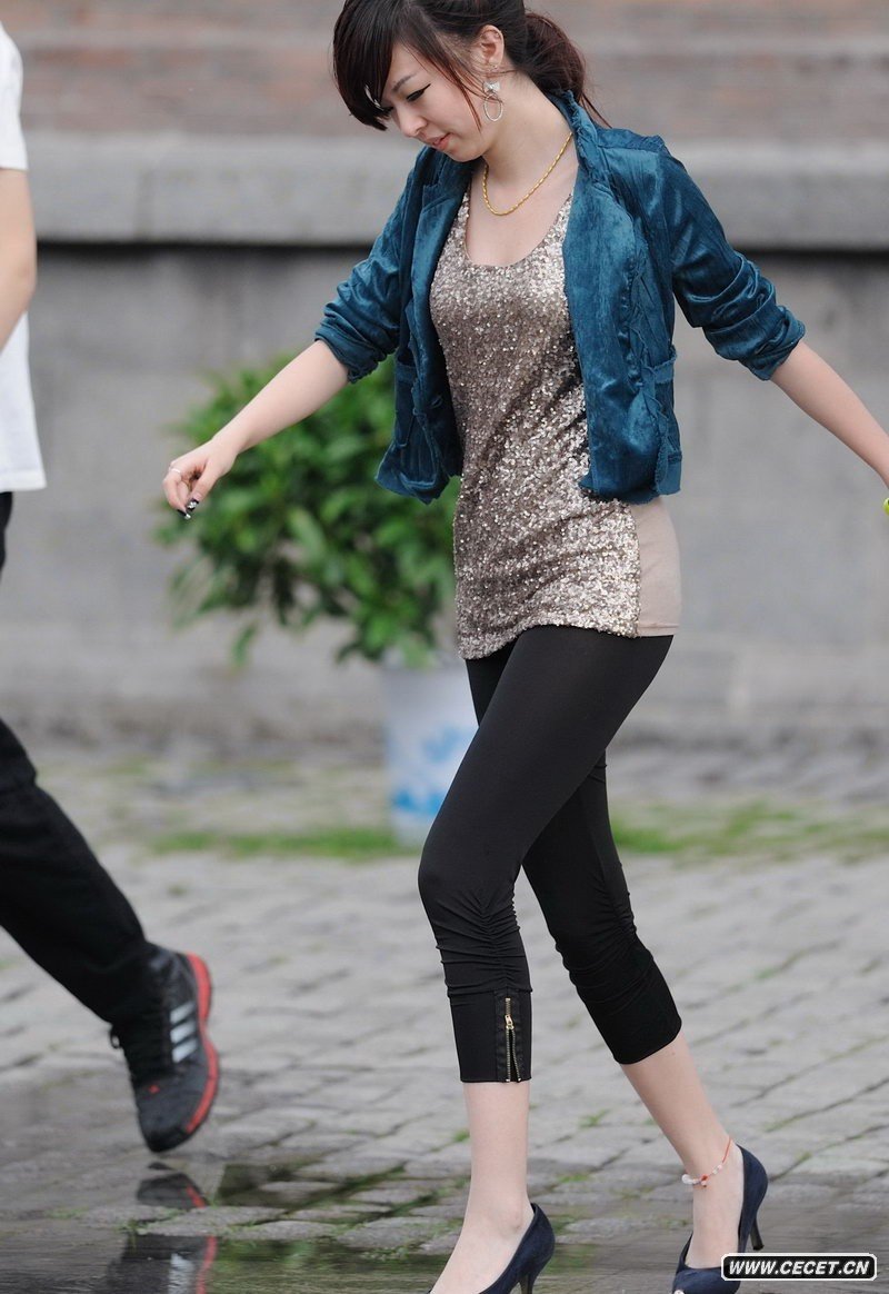 仁達廣場(chǎng)街拍黑色緊身褲美女