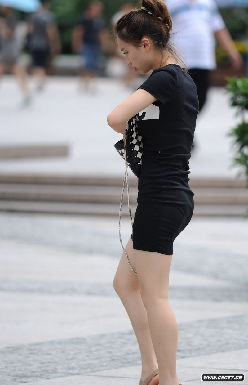街拍緊身短裙白嫩美腿女生