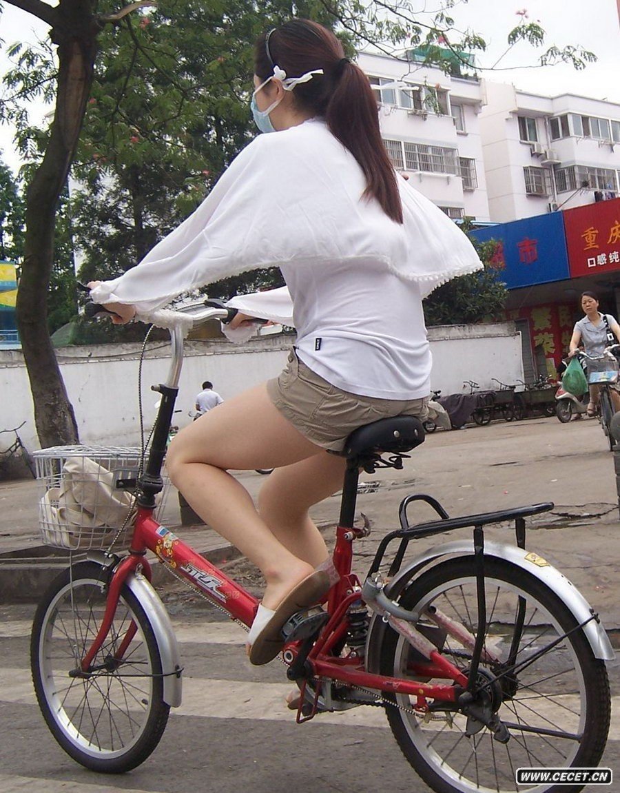 小區門(mén)口抓拍的騎自行車(chē)美女