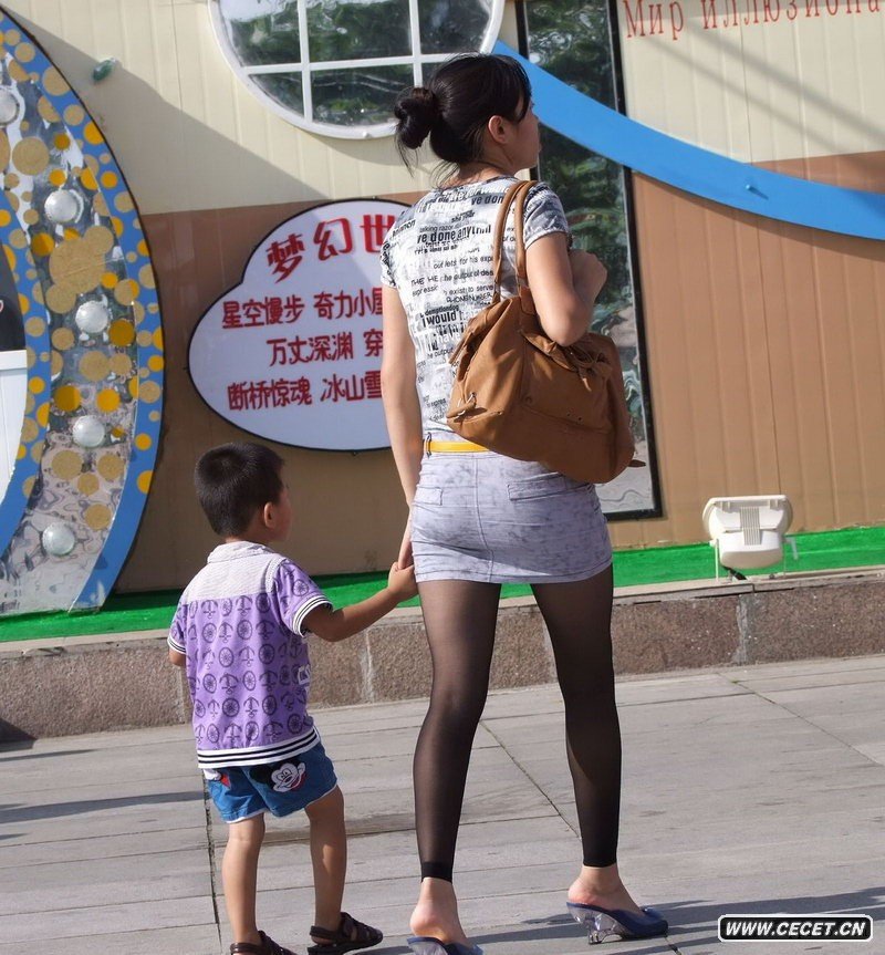 游樂(lè )園里抓拍到的黑絲襪美少婦