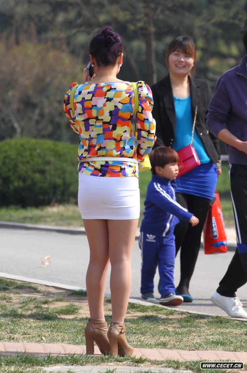 植物園里抓拍的一步裙美少婦