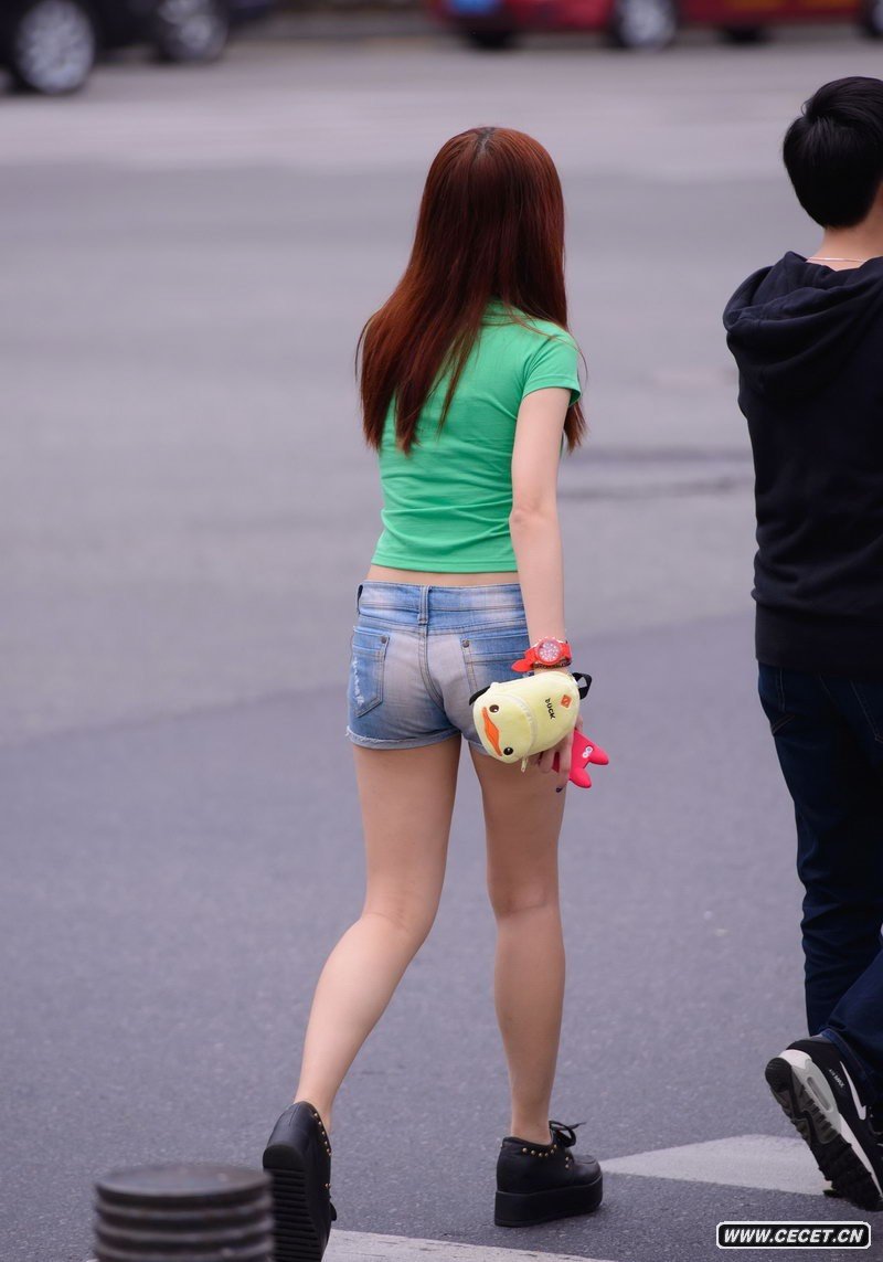 美通廣場(chǎng)街拍的牛仔熱褲美女