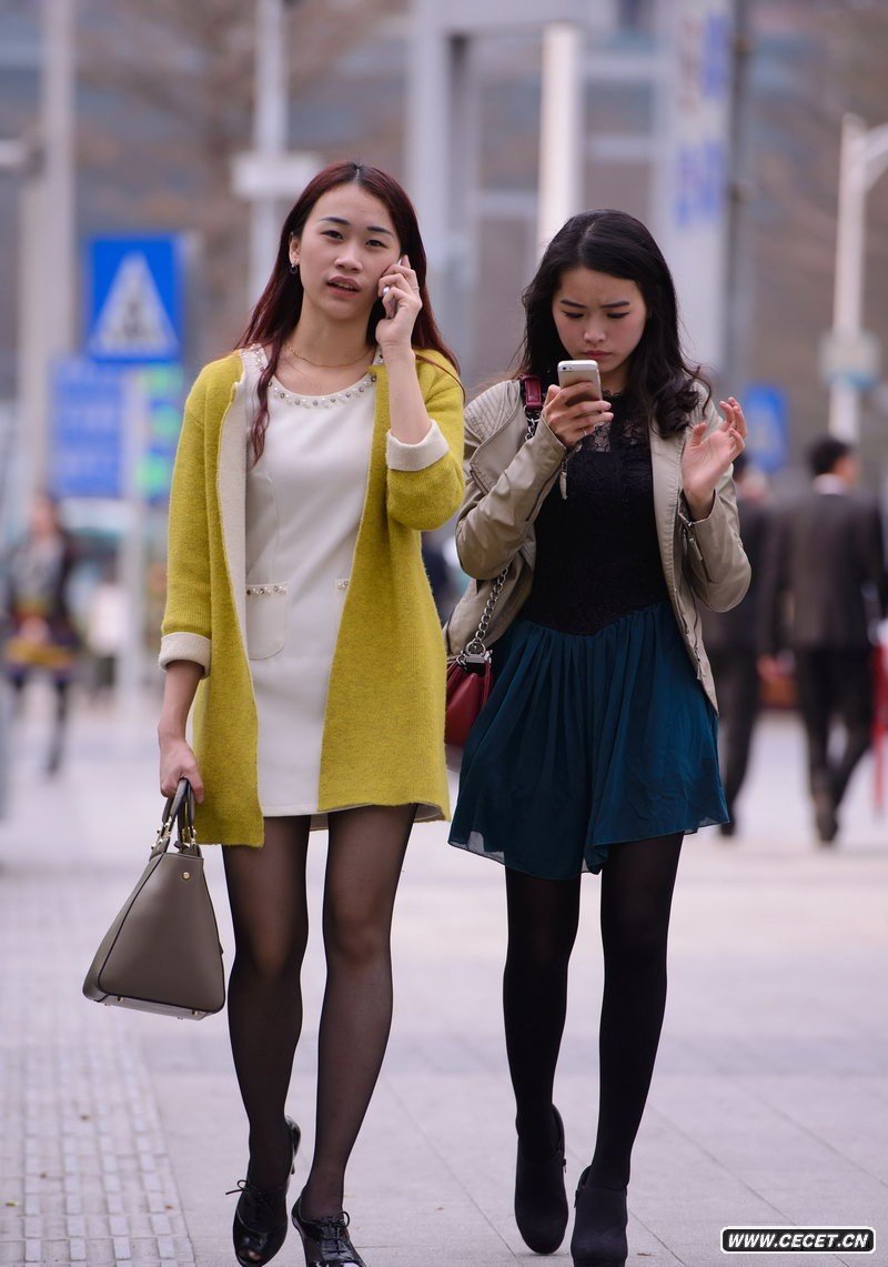 光彩東路街拍兩個(gè)時(shí)尚黑絲妹妹