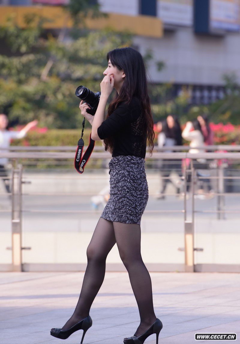 解放廣場(chǎng)街拍緊身裙黑絲美女