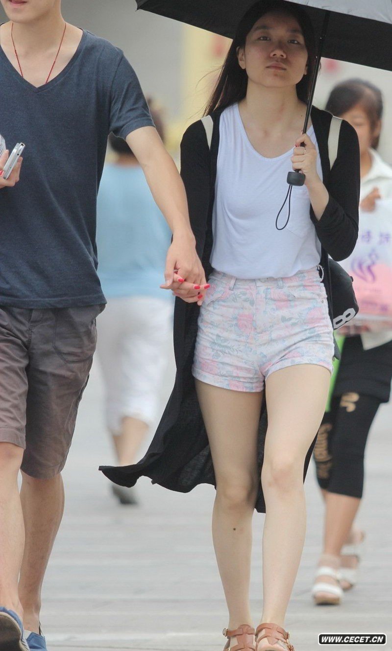 街拍對面走來(lái)的花色熱褲白腿美眉