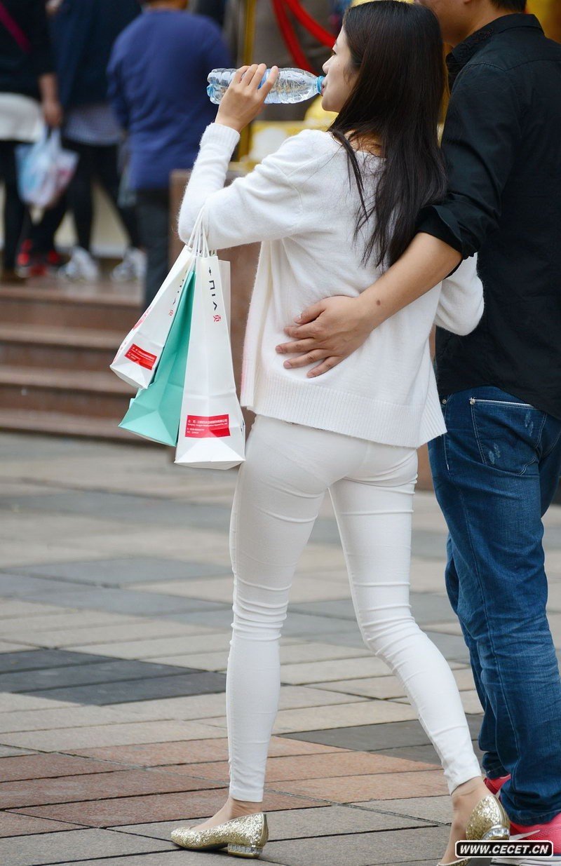 東方廣場(chǎng)街拍的白色緊身褲美眉