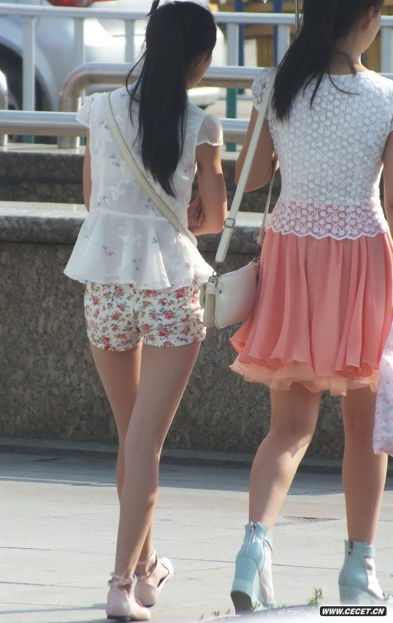 解放廣場(chǎng)街拍的小花超短褲女生