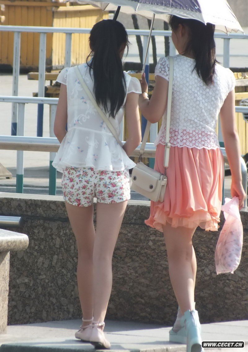 解放廣場(chǎng)街拍的小花超短褲女生