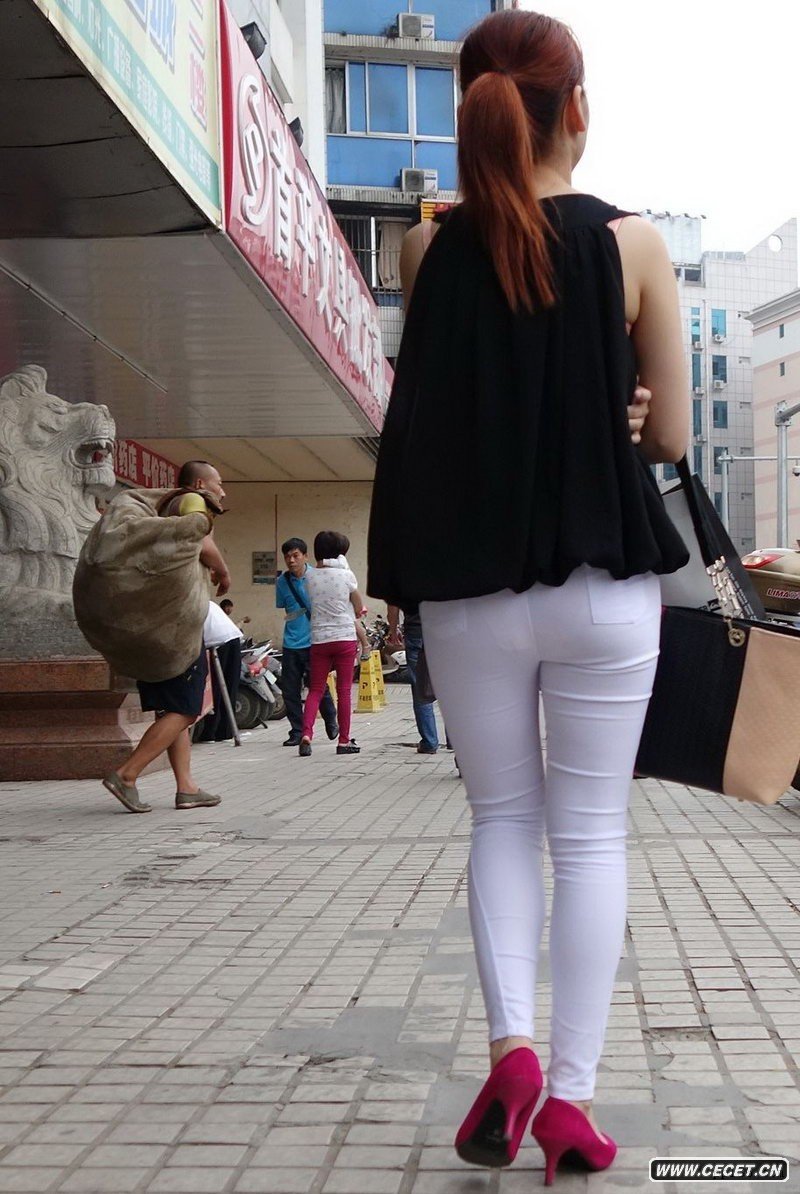 小商品批發(fā)市場(chǎng)街拍緊身褲美眉