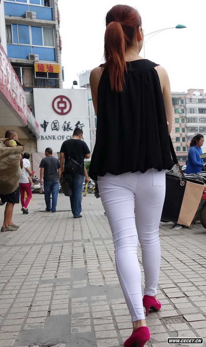 小商品批發(fā)市場(chǎng)街拍緊身褲美眉