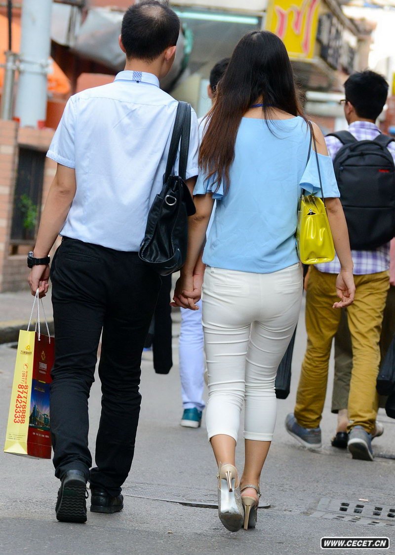 街拍的白色緊身褲好身材美少婦