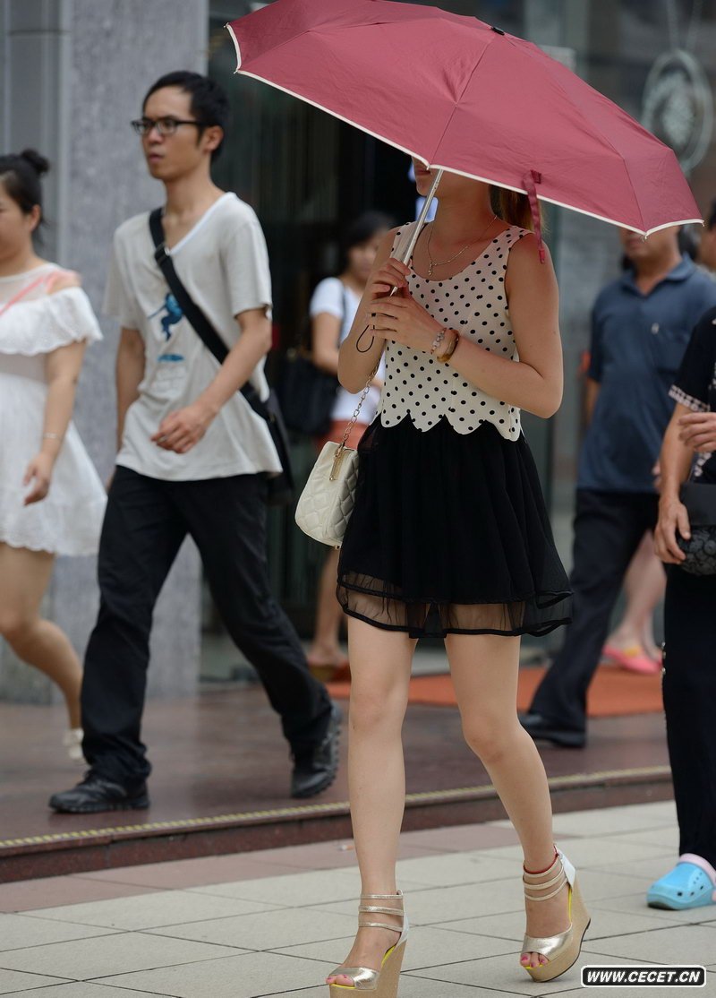 南新街抓拍的黑色薄紗短裙MM