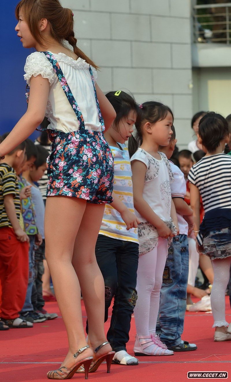 活動(dòng)現場(chǎng)抓拍的吊帶裝女教師
