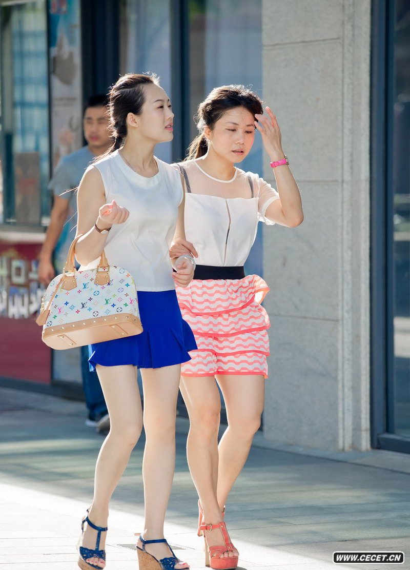 西城廣場(chǎng)街拍兩個(gè)白皙美腿女生