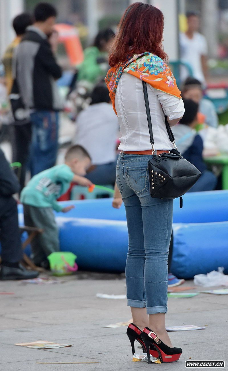 游樂(lè )場(chǎng)抓拍的牛仔褲美少婦