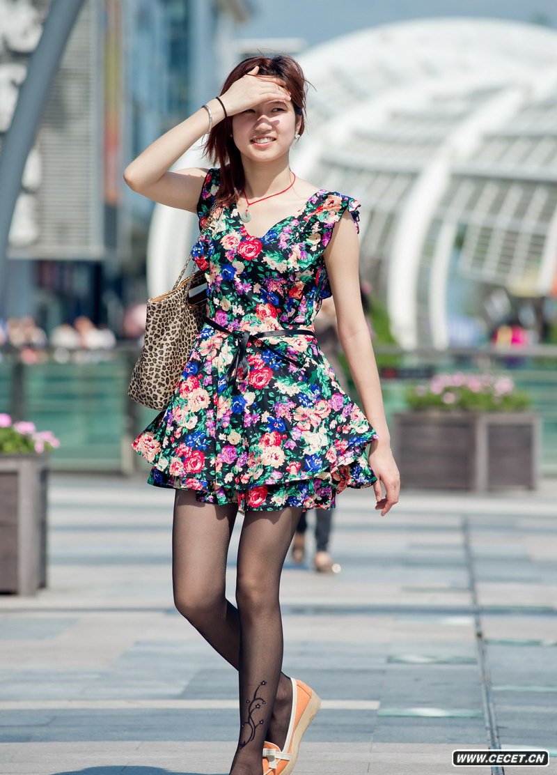 昆山廣場(chǎng)街拍的花裙子黑絲美眉