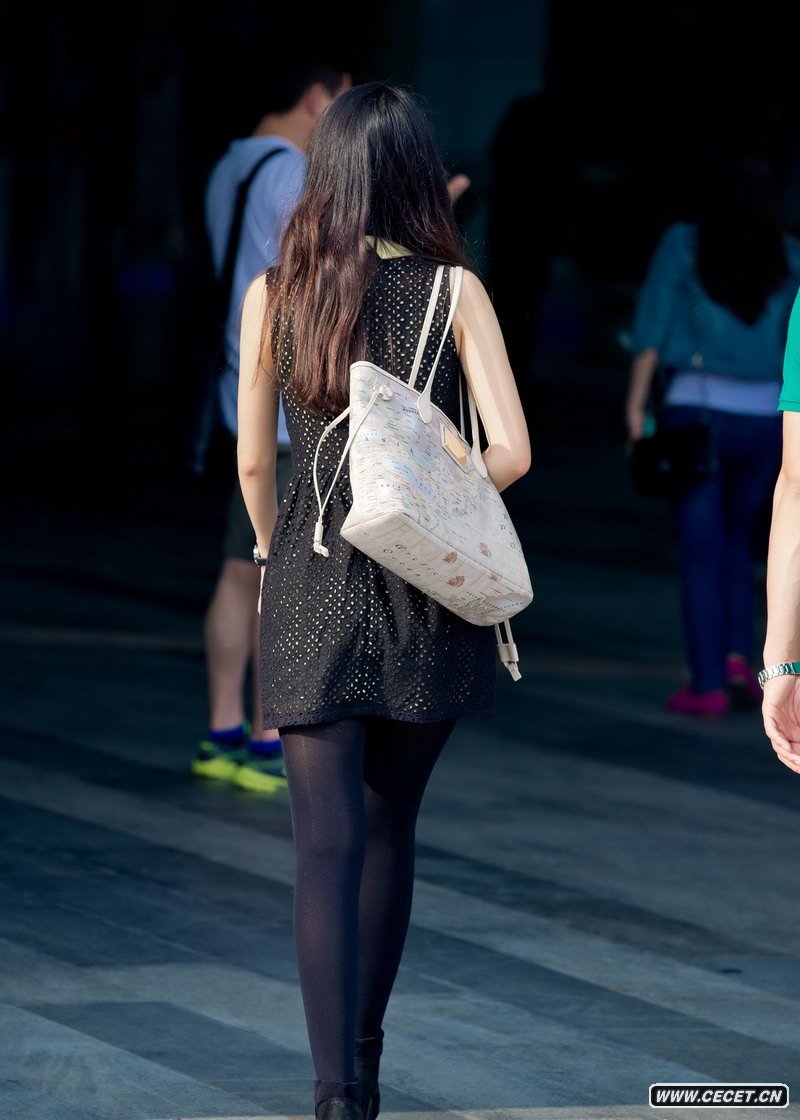 數碼廣場(chǎng)街拍的藍絲清秀妹子