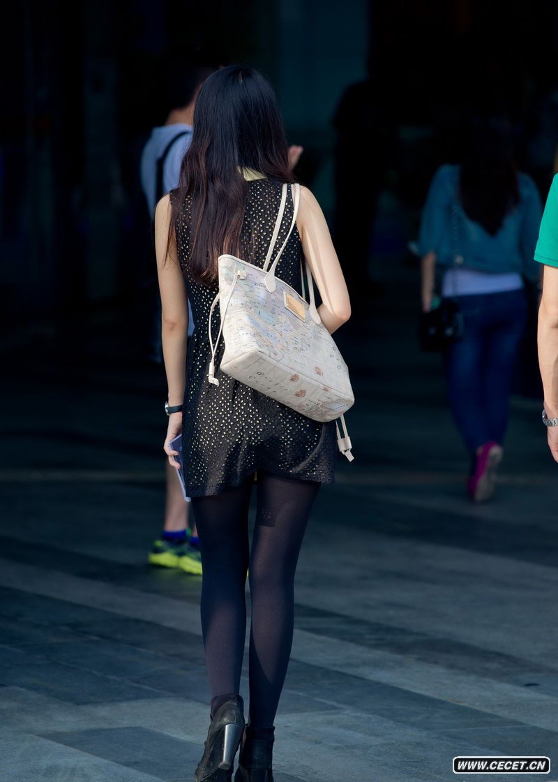 數碼廣場(chǎng)街拍的藍絲清秀妹子