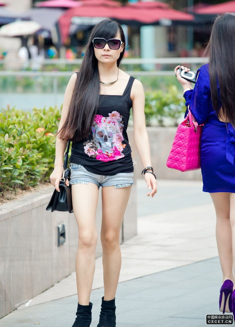 廈門(mén)街拍的牛仔熱褲墨鏡妹妹