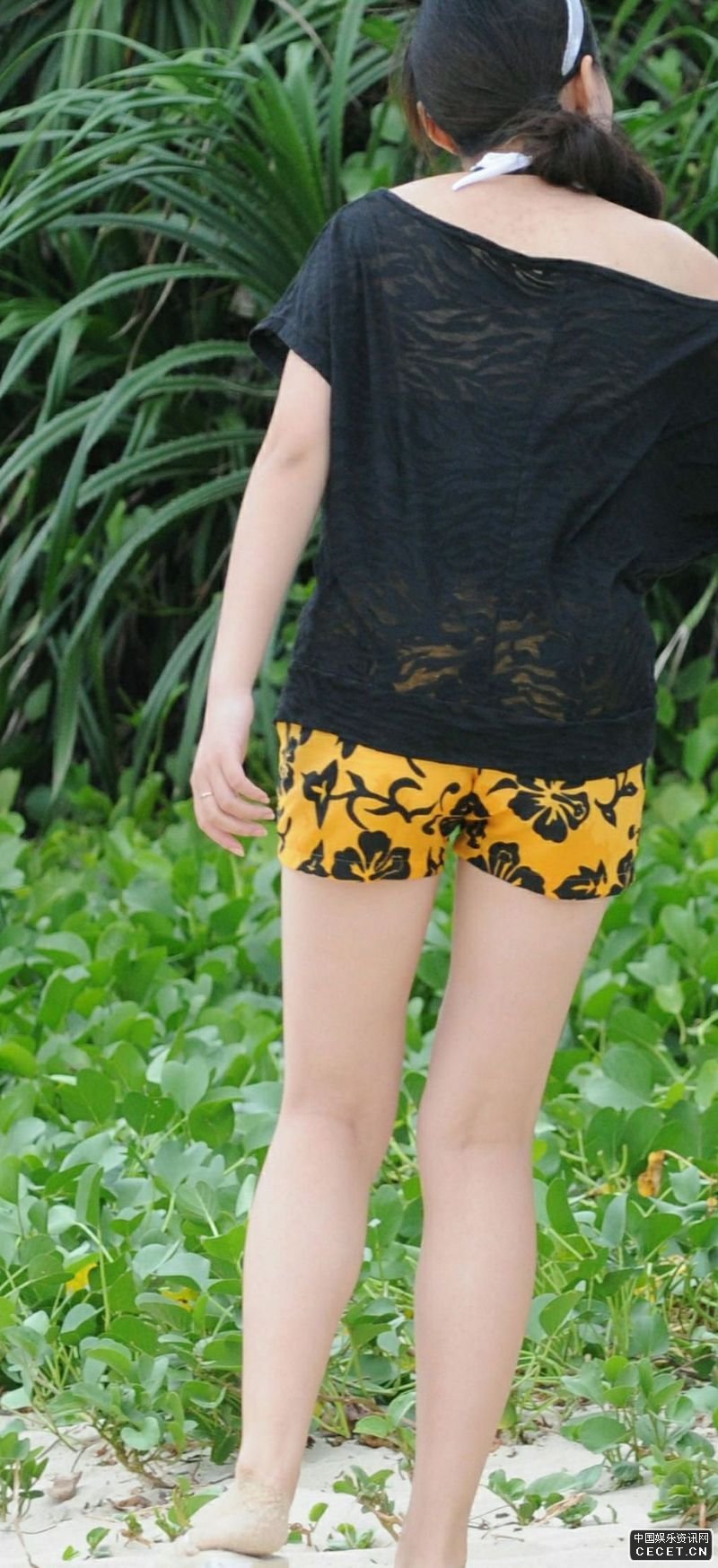 植物園里抓拍的花色短褲妹妹