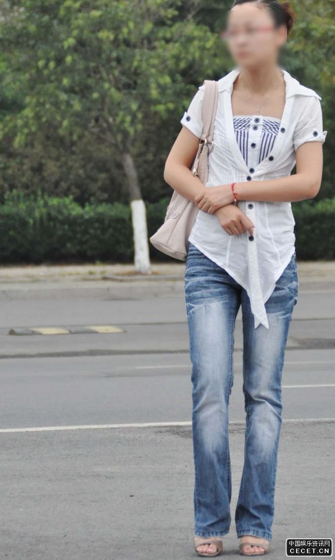 仁和路街拍的牛仔褲文靜美女