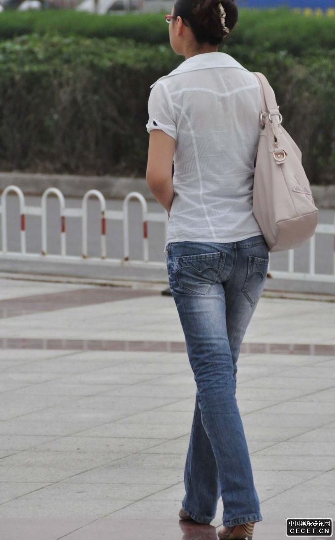 仁和路街拍的牛仔褲文靜美女