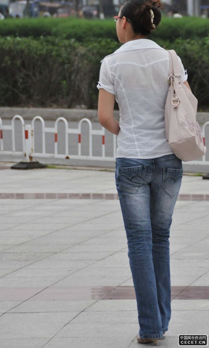 仁和路街拍的牛仔褲文靜美女