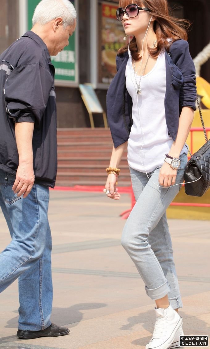 新風(fēng)街抓拍的休閑牛仔褲美眉