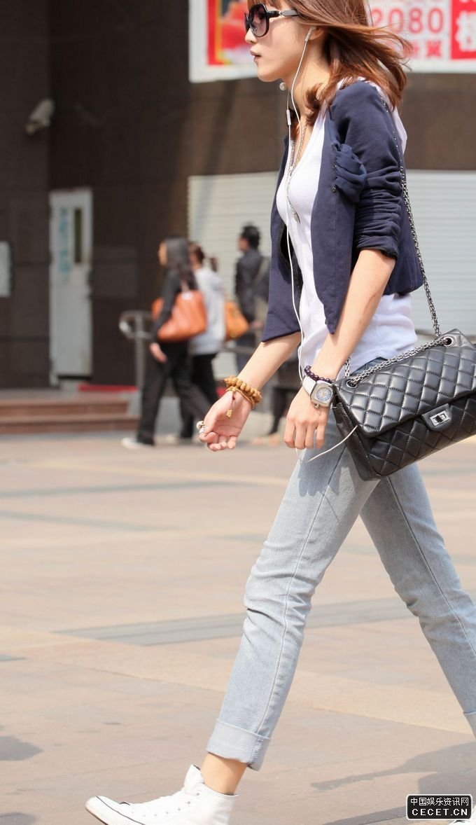 新風(fēng)街抓拍的休閑牛仔褲美眉