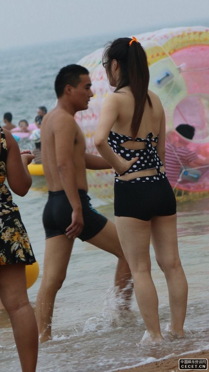 海邊抓拍的泳裝長(cháng)發(fā)美女
