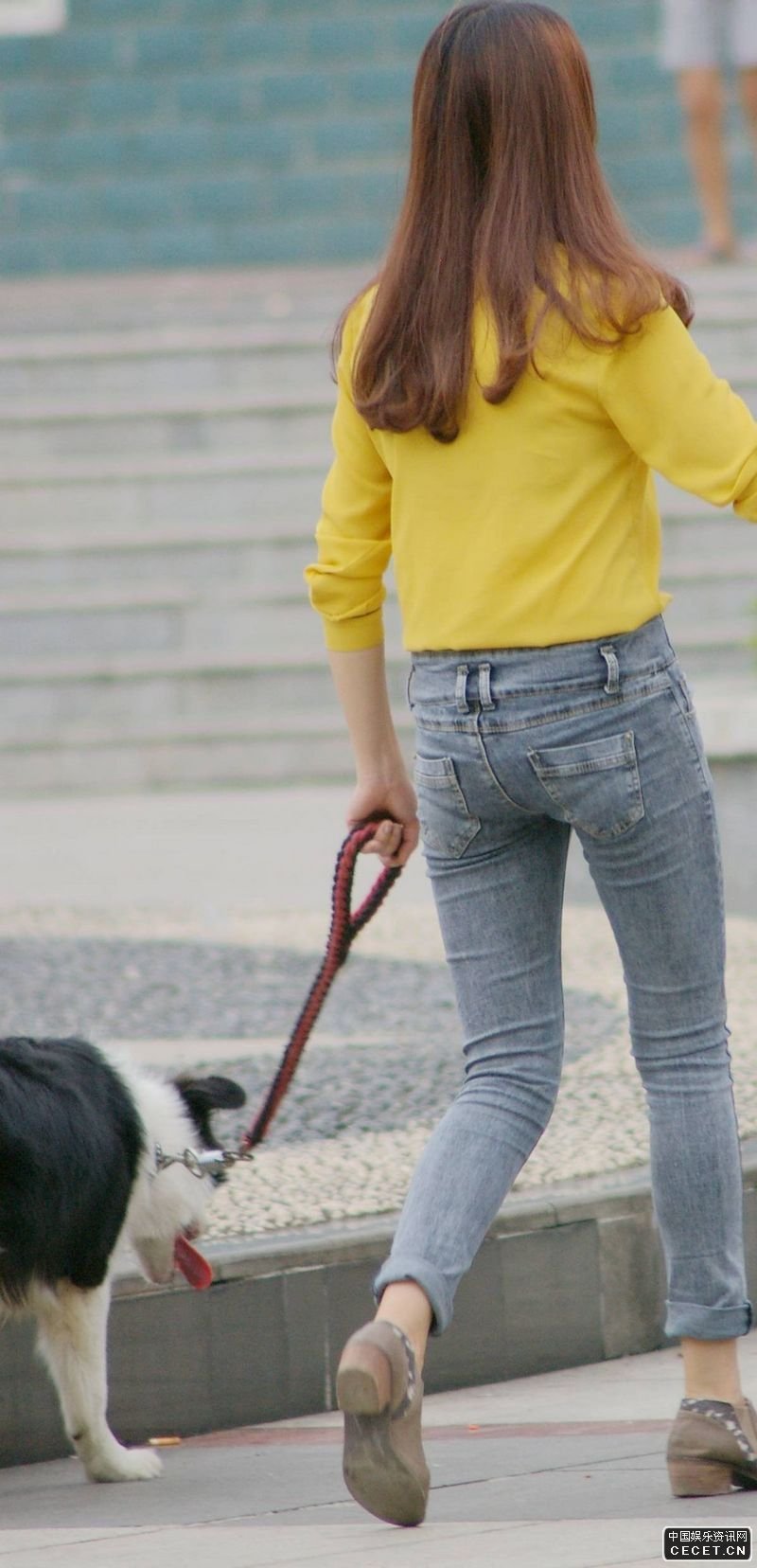 廣場(chǎng)街拍遛狗的牛仔褲美眉