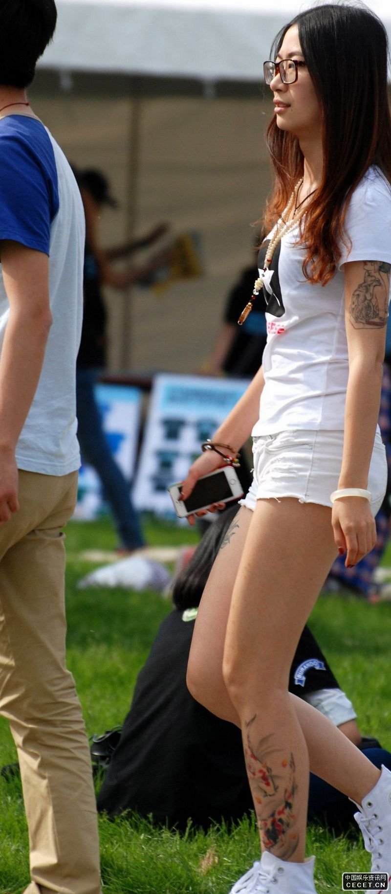 公園里抓拍的白色熱褲長(cháng)腿美眉