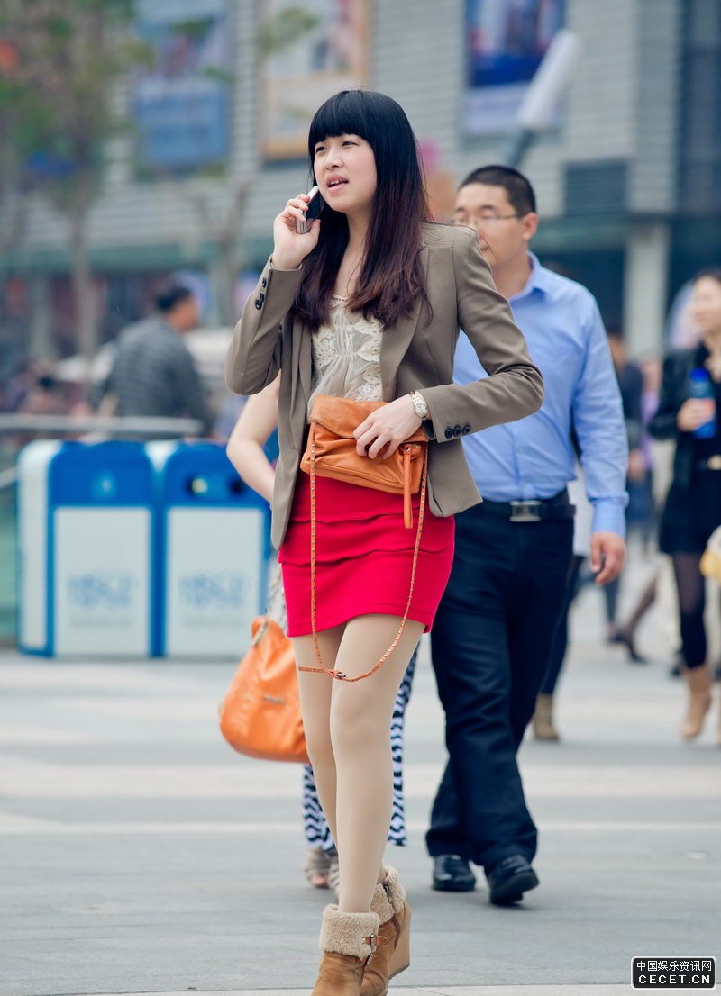 安定西路街拍的紅色短裙妹子