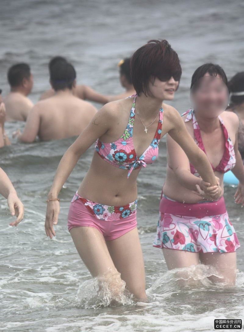 抓拍在海邊玩水的泳裝美女