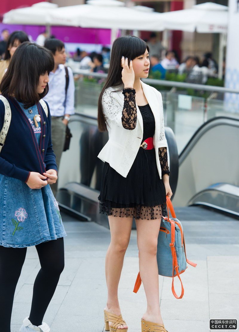 桃園廣場(chǎng)街拍的黑色紗裙妹子
