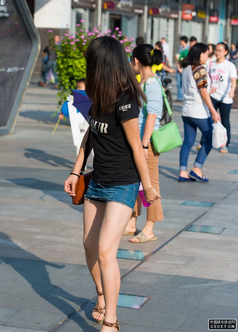 街拍的牛仔短褲裙白腿美眉