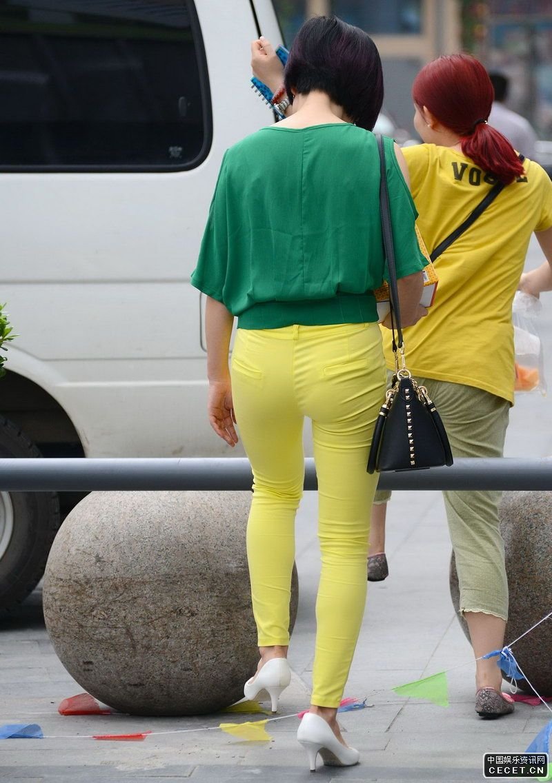 停車(chē)場(chǎng)抓拍的黃色緊身褲美女