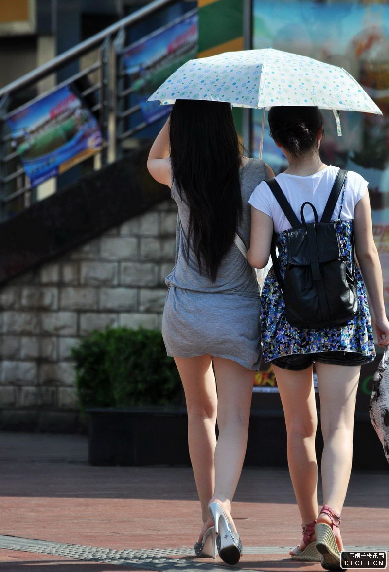 新發(fā)市場(chǎng)街拍的兩個(gè)白腿美女