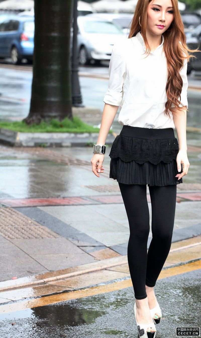 街拍過(guò)馬路的黑絲襪美女