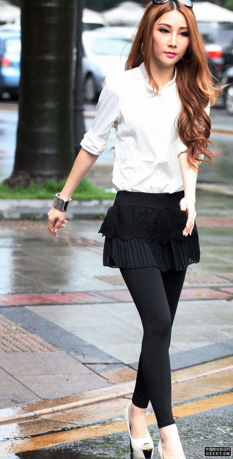 街拍過(guò)馬路的黑絲襪美女
